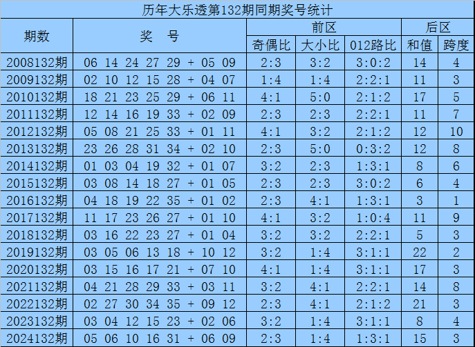 袁军师体彩大乐透第2025132期历史同期奖号分析: