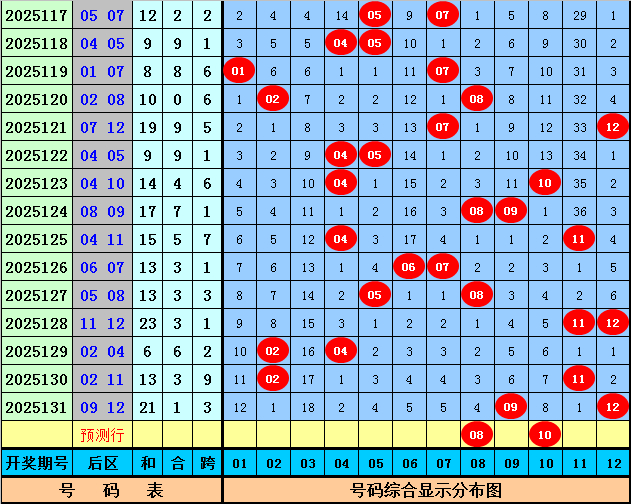 后区分析:上期后区开出奖号09、12,为全大、一奇一偶组合。