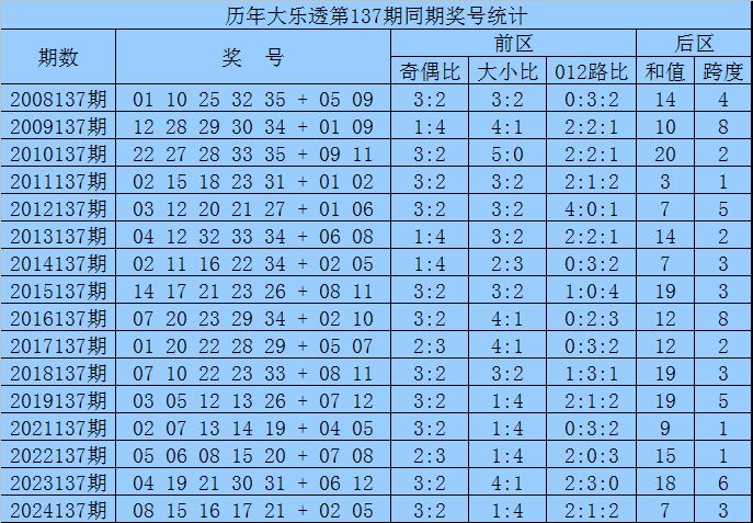 袁军师体彩大乐透第2025137期历史同期奖号分析: