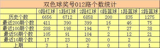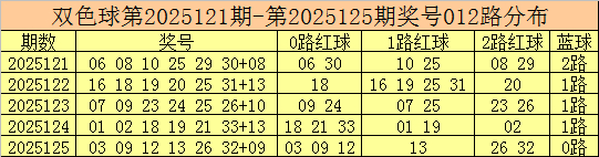 大满贯双色球第2025126期红球号码012路分析
