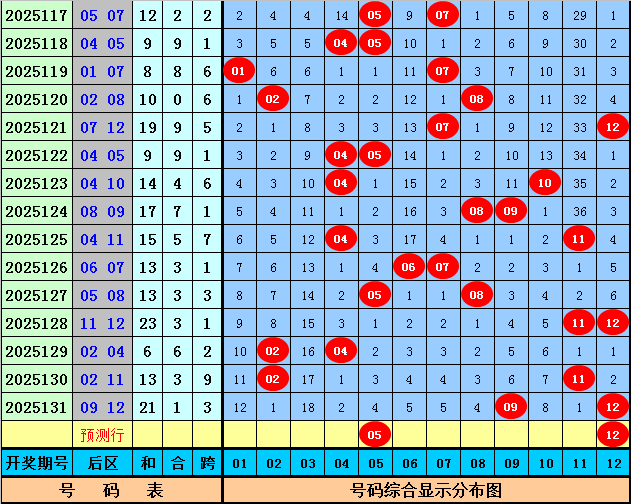 后区分析:上期后区开出0路+0路奖号:09和12,最近20期后区奖号012路比为10:13:17,2路号码走势较热,目前012路号码分别遗漏0期、2期、1期,本期后区注意号码05、07、10、11、12,两码参考05、12。
