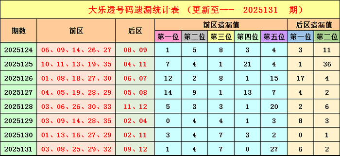 大乐透上期开出号码为:前区03 08 25 29 32,后区09 12。当期前区号码三区比为2:0:3,前区跨度29;后区开出奇偶大大组合。