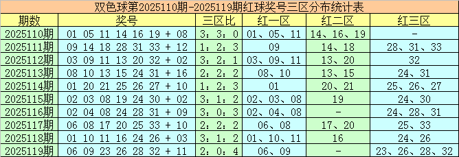 红一区(01-11):上期该区走温,出现2个奖号,该区最近10期出号分布为:3、1、3、2、1、3、3、2、3、2,共开出23个红球,表现非常活跃,本期预计红一区走温,开出1-2个红球,红球参考范围:03、05、07、10。
